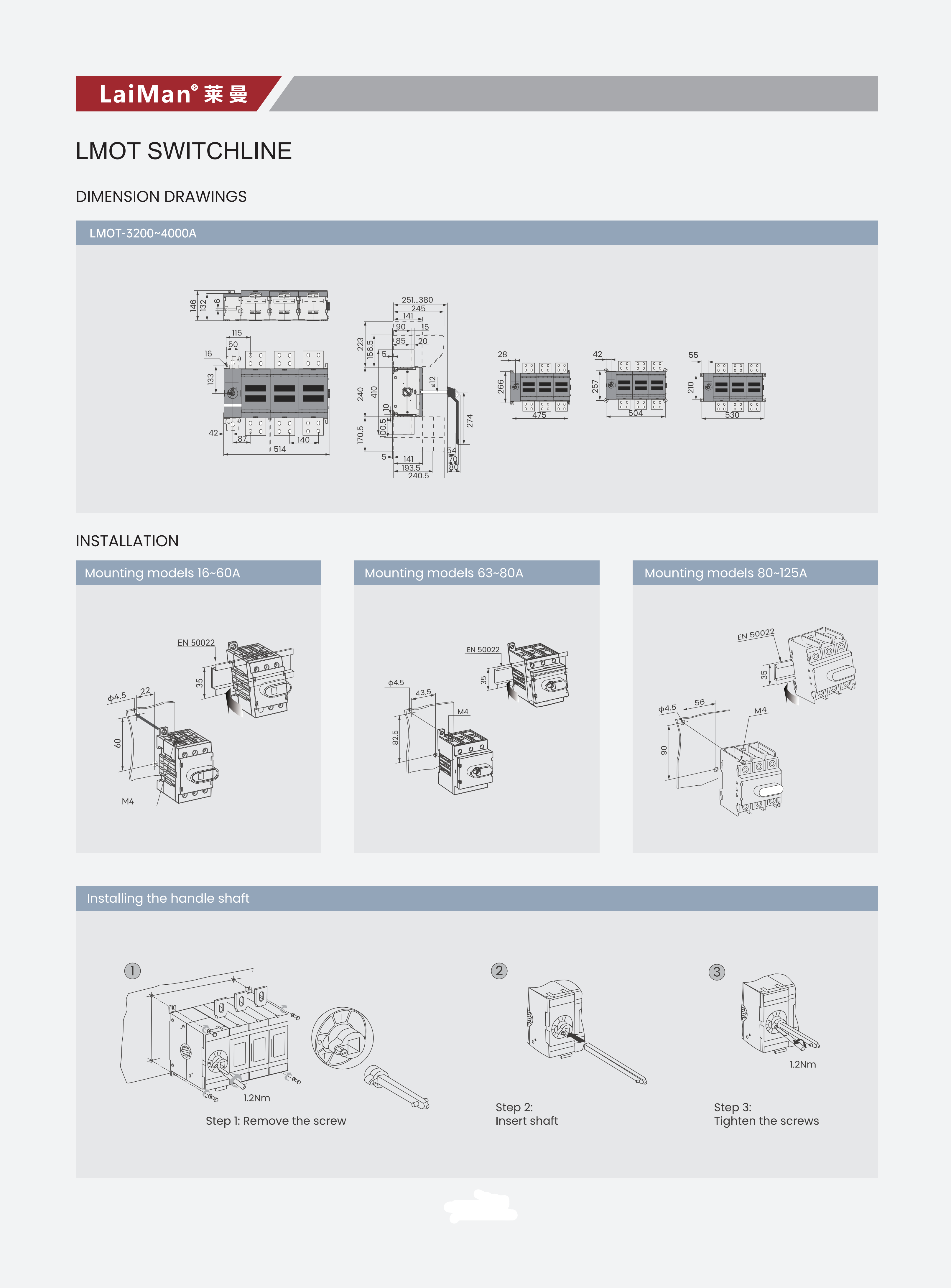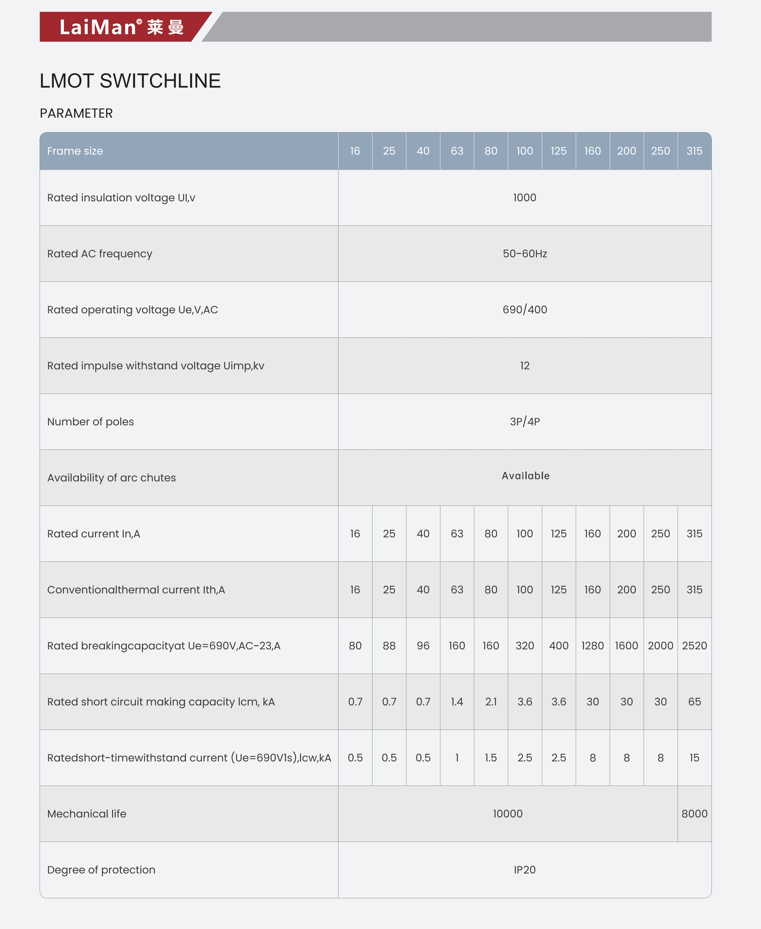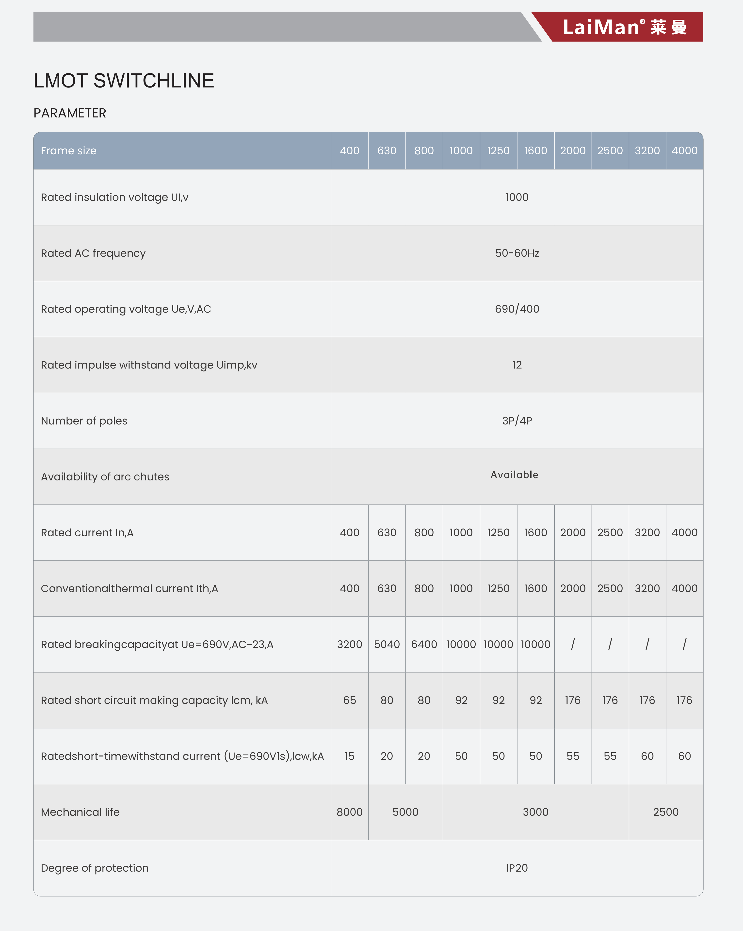 LMOT系列負荷隔離開(kāi)關(guān),適用于交流50Hz、額定電壓交流690V、直流440V,約定發(fā)熱電流至4000A的成套配電裝置中。帶有滅弧室的隔離開(kāi)關(guān)開(kāi)關(guān)用作手動(dòng)不頻繁接通與分段負載電路。開(kāi)關(guān)造型美觀(guān),新穎簡(jiǎn)單,操作方便,而且正面帶有觀(guān)察窗,可直接查看觸頭位置。